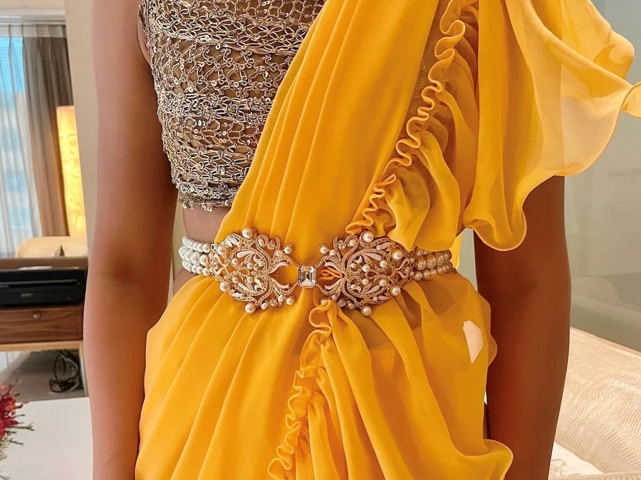 Belt size: Free Size. Color: Golden Material Made from premium Velvet and Sequin for a comfortable experience. Our Belt is Saree waist belt Classic and a perfect accessory for taking photos, occasions, meetings and gatherings.